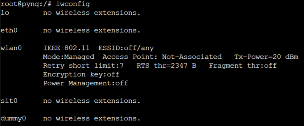 iwconfig # wlan0에서 Access Point가 Not-Associated라면 잘 동작하고 있지 않다는 것이다 !!