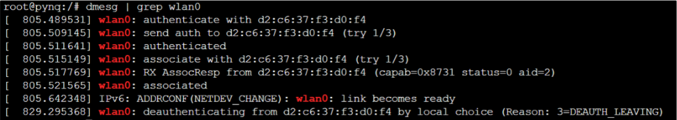 이를 해결하기 위해 dmesg | grep wlan0 명령어를 입력해서 어떤 상태인지 파악했다.